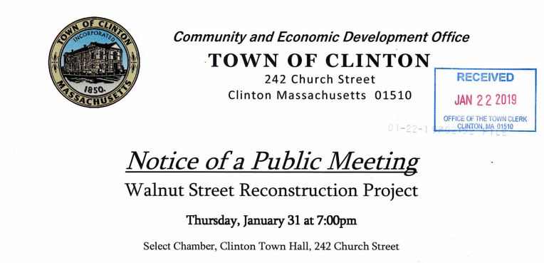 On Thursday, January 31, at 7 p.m., Clinton’s Community and Economic Development Office will host an information session in the Select Chamber (second floor) of Town Hall. Residents of Water Street and any other interested citizen are welcome to attend and learn more about this exciting project.